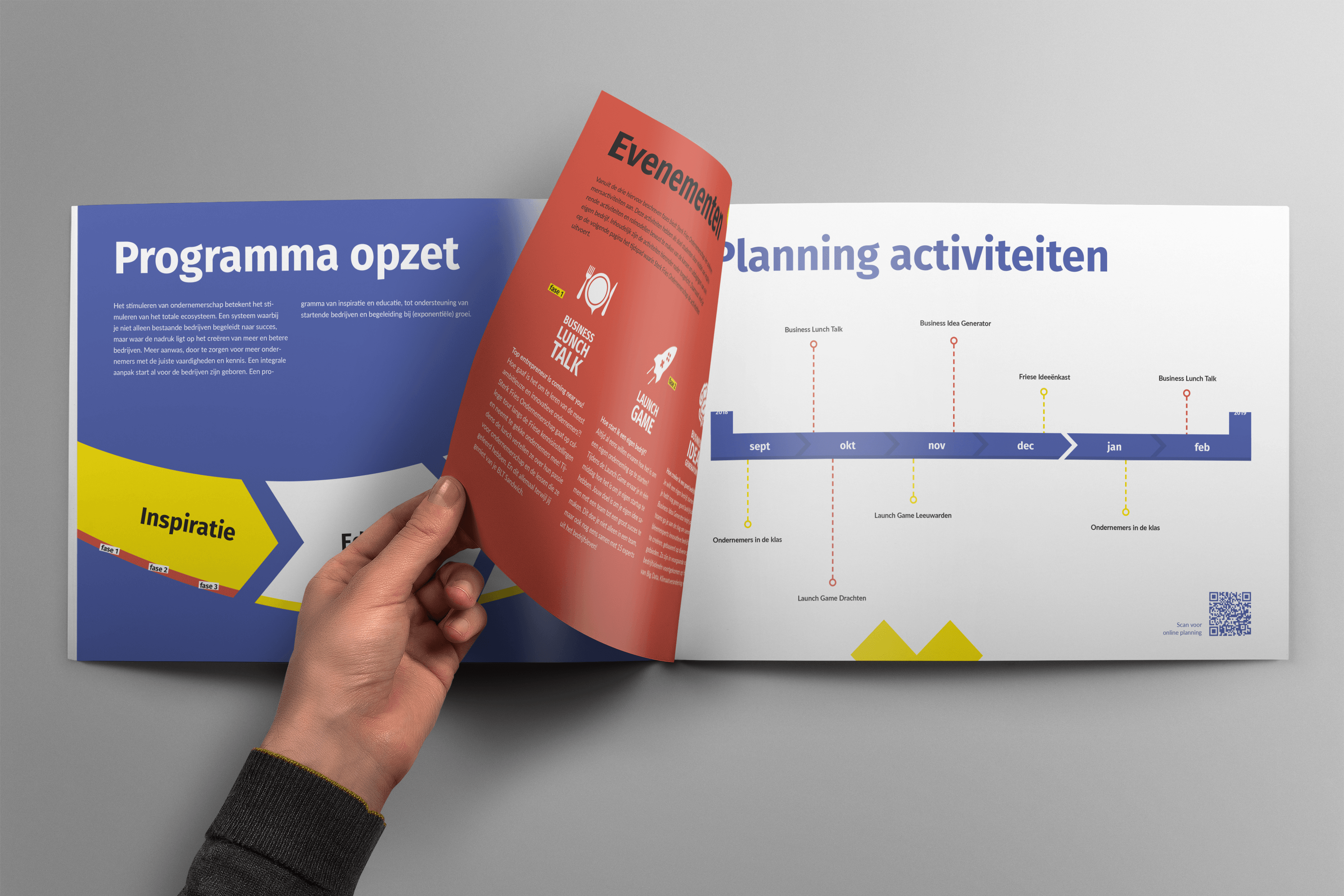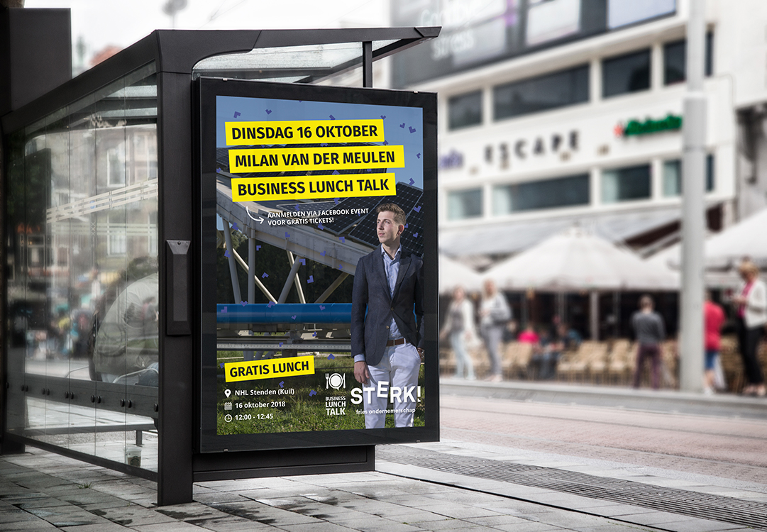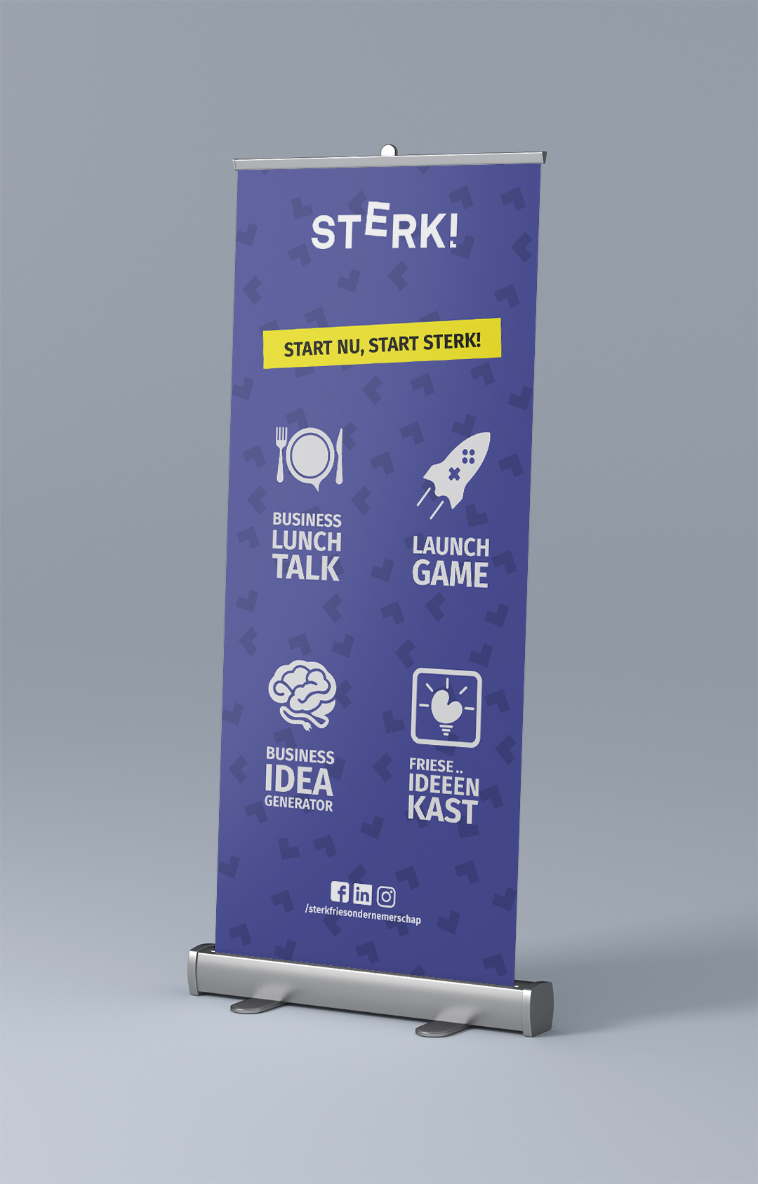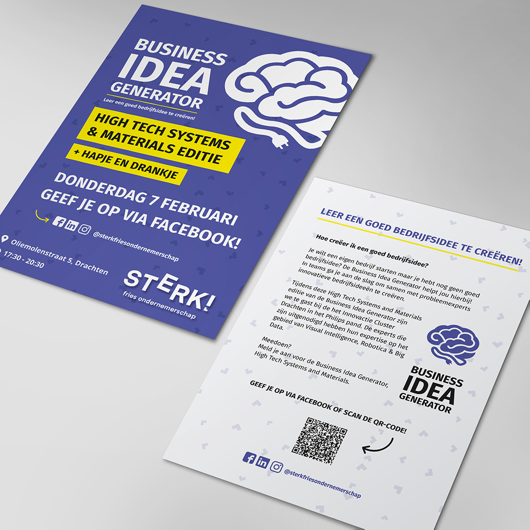 Dyseno continuously assists Sterk Fries Ondernemerschap with their marketingactivities by providing visual content for all their communication needs. Flyers, posters, branded coffee cups, social media imagery, you name it!